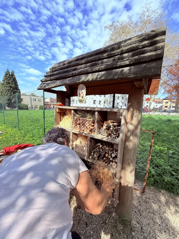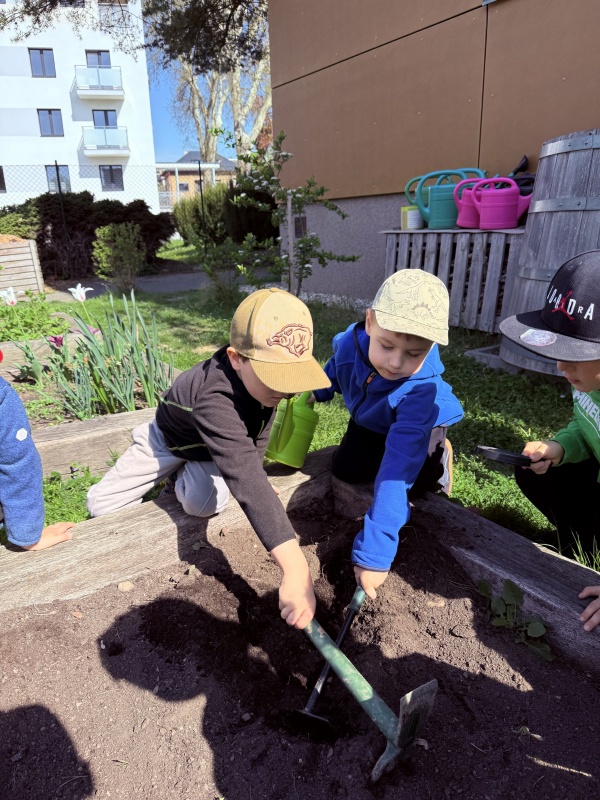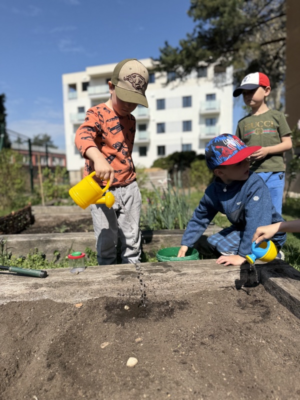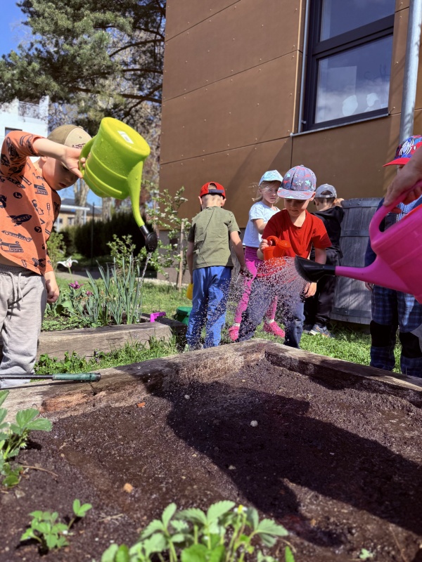 Zaměřili jsme se na naše malé, ale velmi důležité kamarády – hmyz. Děti se dozvěděly, jakou roli hmyz hraje v přírodě – opyluje květiny, pomáhá rostlinám růst a je důležitou součástí potravního řetězce. Povídali jsme si, proč je důležité hmyz chránit a jak mu můžeme pomoci. A protože chceme být dobrými kamarády přírody, vyrobili jsme hmyzí domeček, který stojí na zahradě školky. Děti si s nadšením vyzkoušely práci se dřevem, šiškami a dalšími přírodními materiály. Každý přiložil ruku k dílu a výsledek stál za to! A co by to bylo za domov bez jídla? K hmyzímu domečku jsme zasadili zeleninu a květinky, aby měli naši noví obyvatelé i něco dobrého na zub. Děti si užily sázení, pozorování půdy a vůbec celou práci na zahrádce.