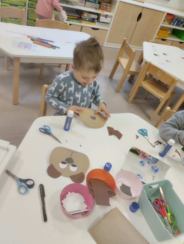 Vyráběli jsme medvěda z papíru. Rozpoznávali jsem, který je menší a větší.