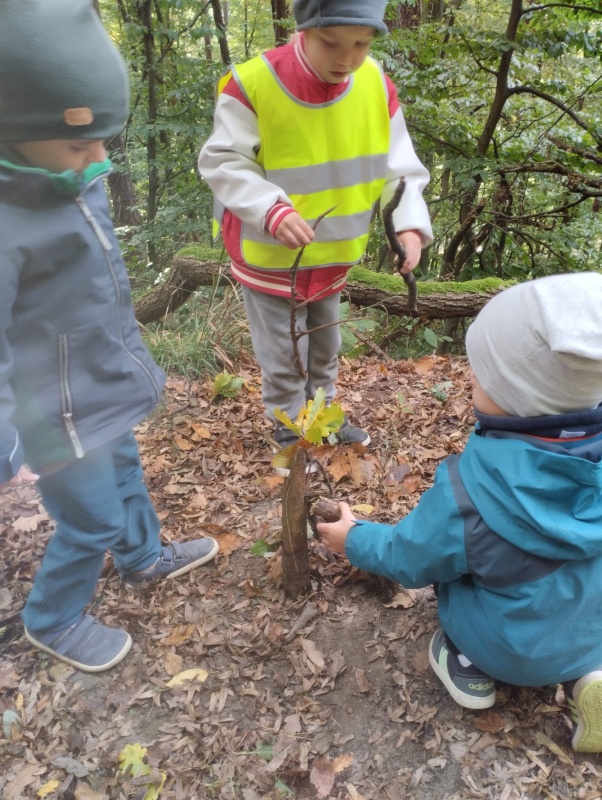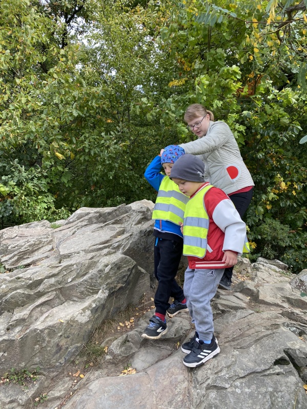 Tento týden jsme se neobjevili ve školce, ale v lese. Udělali jsme si vycházku do lesa na vyhlídku Hranic a Teplic. Stavěli jsme domečky pro lesní skřítky a pozorovali jsme, jak se nám stromy zbarvují a proměňují.