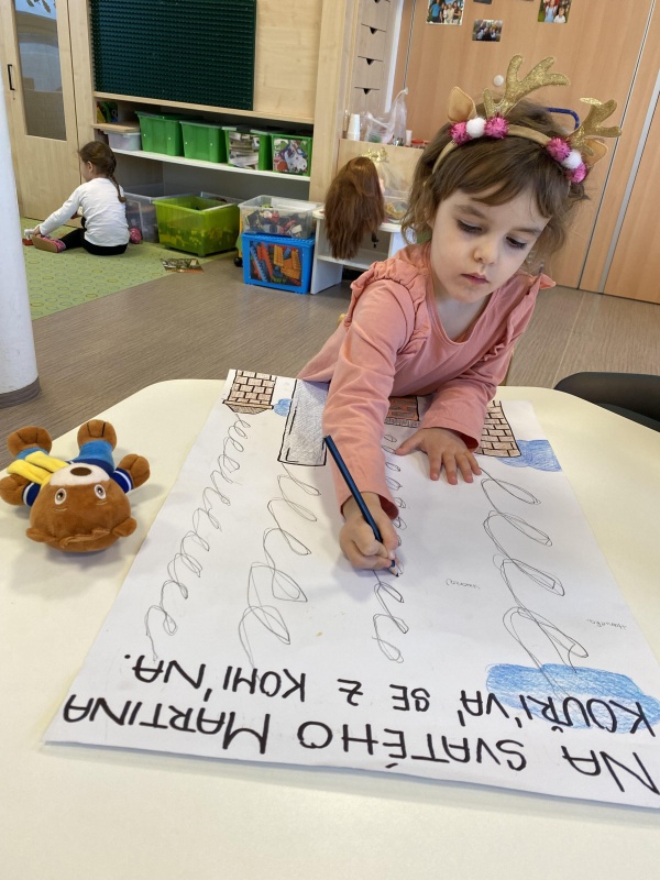 Tento týden u nás měla praxe Markétka, která si s dětmi začala povídat o svatém Martinovi. Vyzkoušeli si prostorové bludiště, poslechli si příběh svatého Martina a jeden kůň k nám do třídy dokonce přicválal. Sice dřevěný, ale radost udělal velikou.