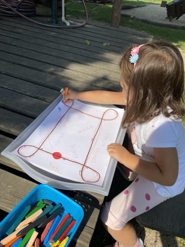 Počasí nám dovolilo strávit mnoho času venku. Vyzkoušeli jsme si první společnou vycházku do nedalekého okolí, a sluníčko nás dopoledne příjemně hřálo i v zahradním altánku za naší školkou.