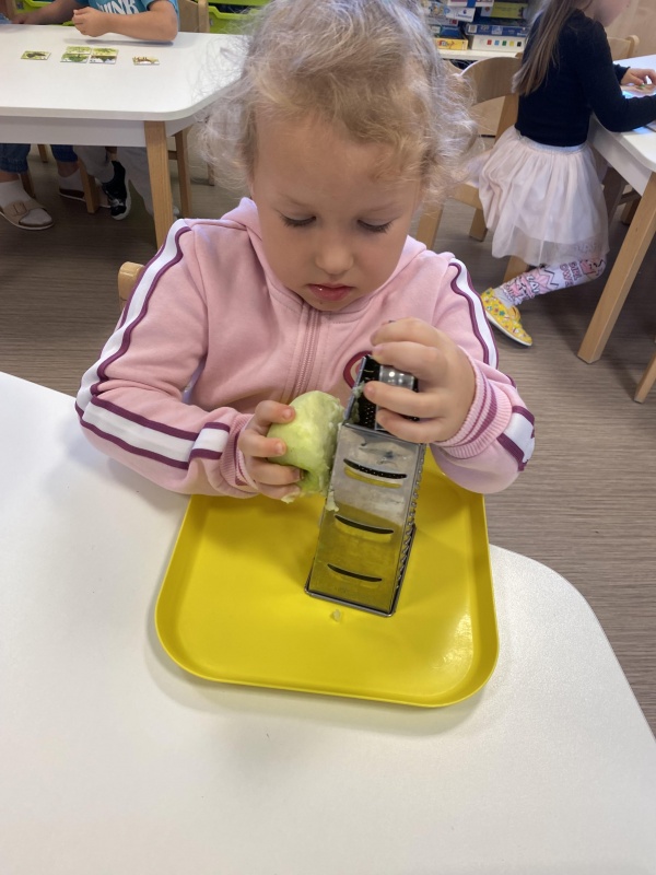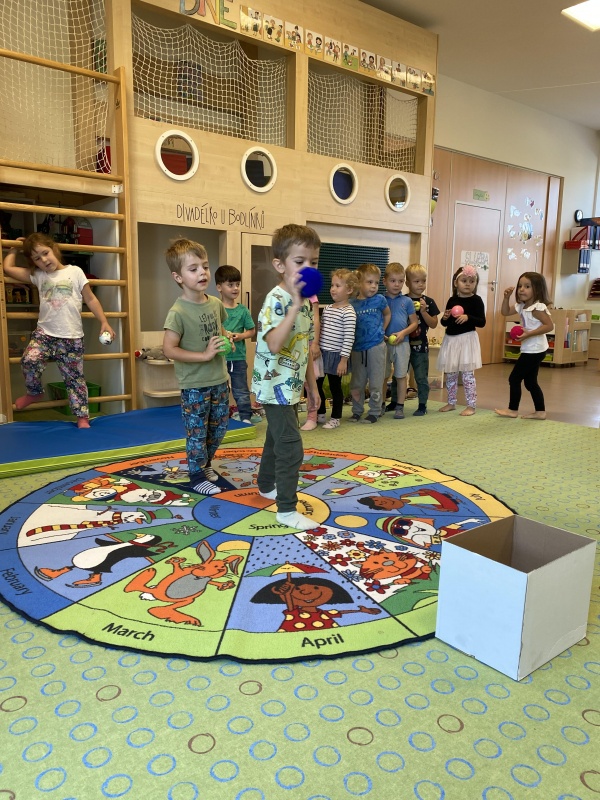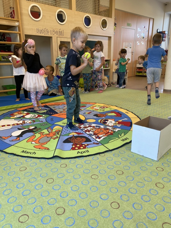 Nezapomněli jsme ani na hrubku motoriku, a proto jsme se učili házet na cíl. A celé téma jsme zakončili štrůdlem. Děti se všechny zapojily. Některé strouhaly jablíčka, jiné přidávaly skořici nebo cukr. Ostatní potíraly vajíčkem. Štrůdl se nám moc povedl, jen ho bylo málo.