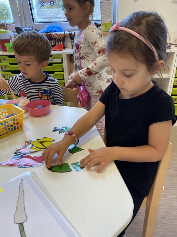 Hráli jsme hru na mandelínky a zahradníky, pracovali jsme s demonstračními obrázky ovoce a zeleniny nebo jsme přiřazovali barvu ke správné zelenině.