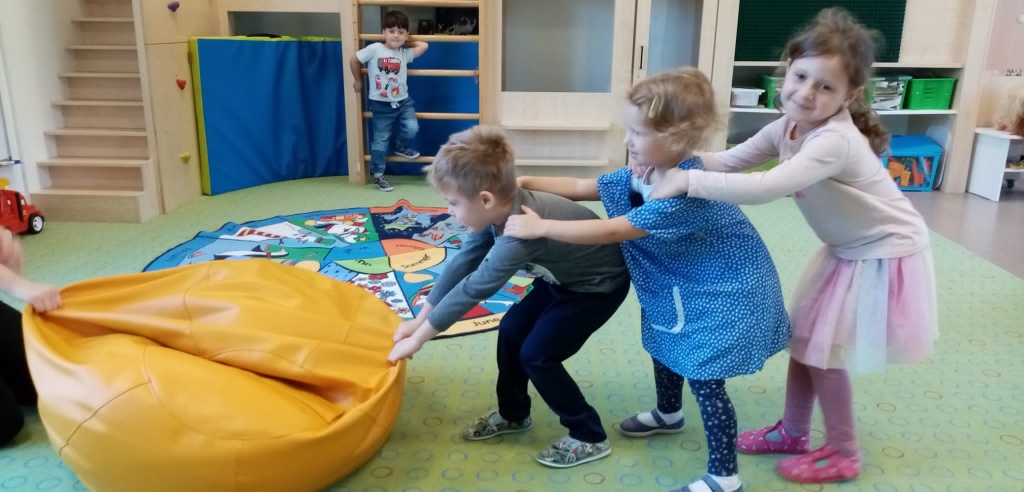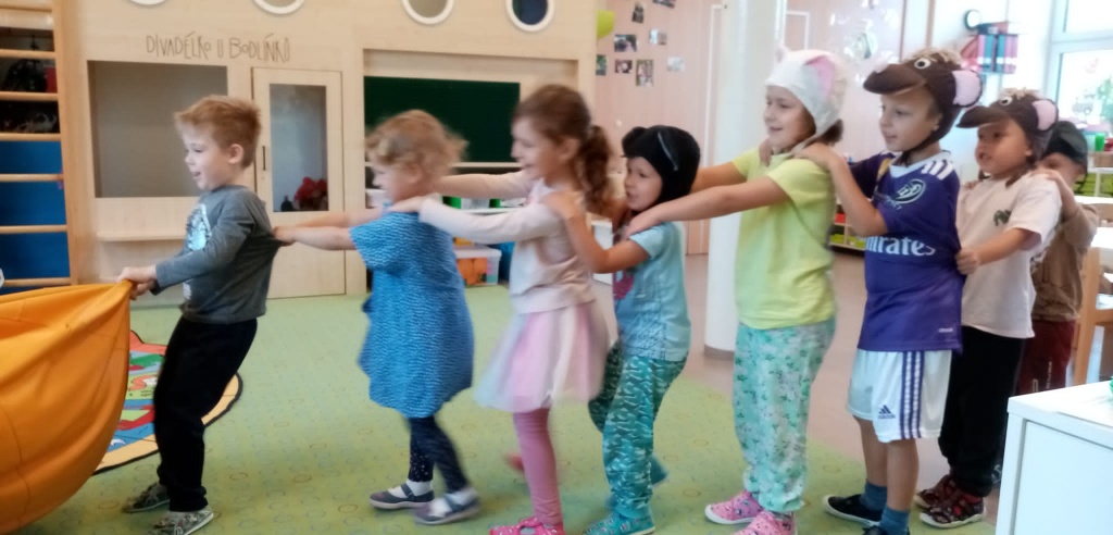 Zahrali jsme si pohádku O Veliké řepě. A táhly jsme a táhly, až jsme ji společně vytáhly.