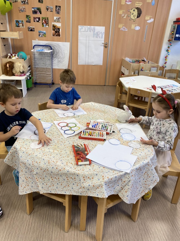Vyráběli jsme lyžaře na sněhu a olympijské kruhy.
