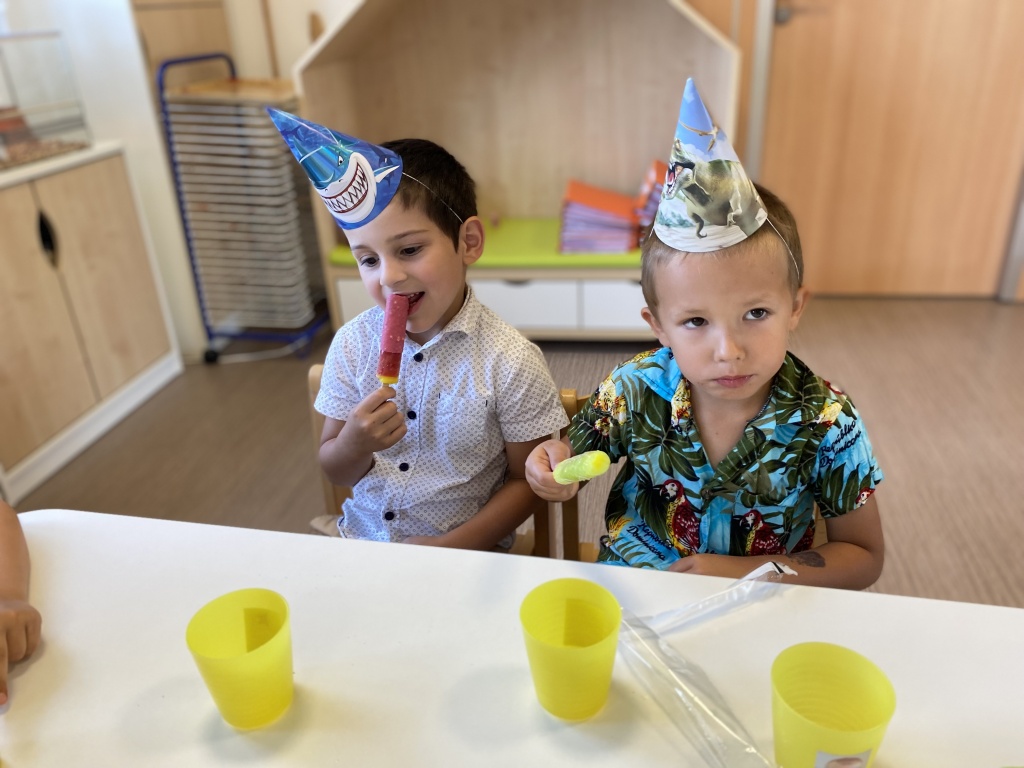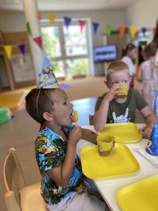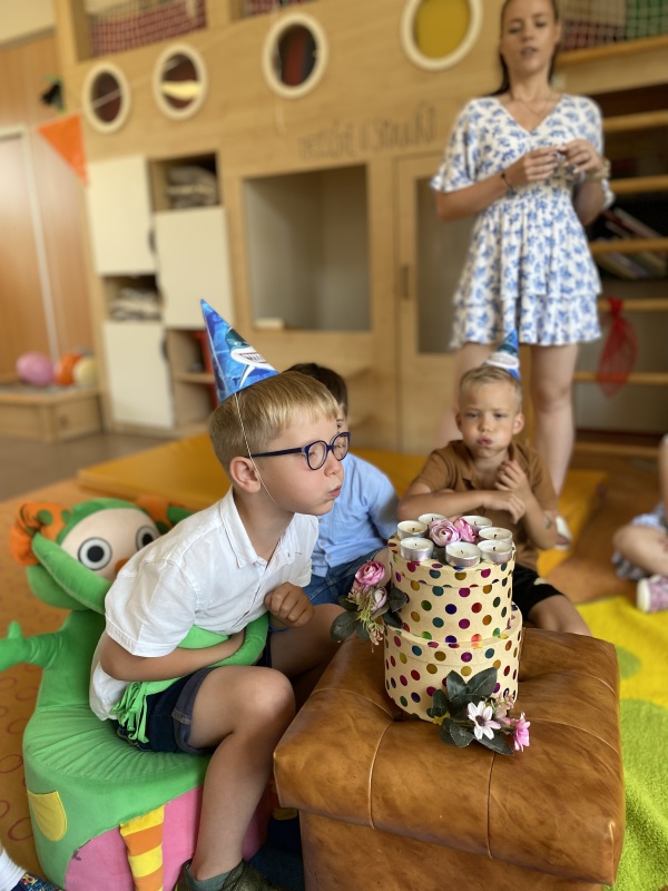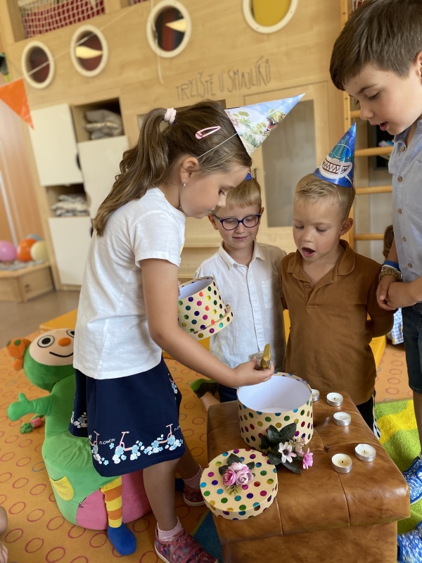Oslavenci nás obdarovali dobrotama, ale i dárečkama. Šimonek pro nás vyrobil knížky i vlaštovky z papíru.